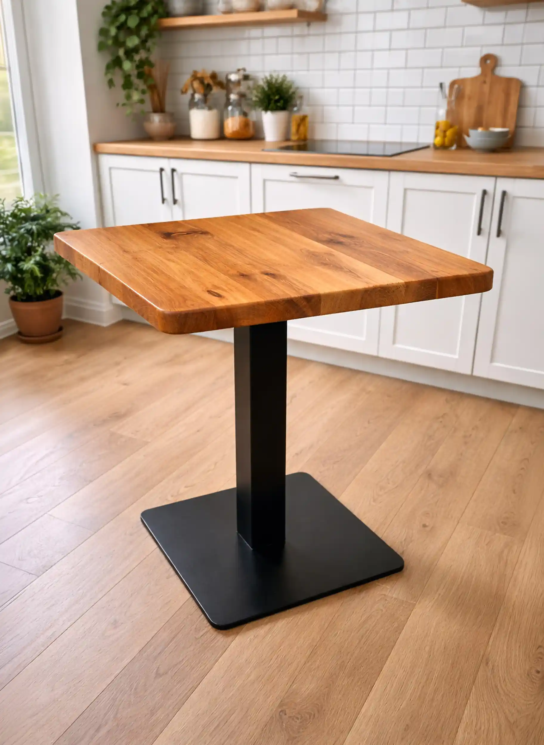 Mesa Cuadrada Pie Central Nexo Madera Maciza Abeto