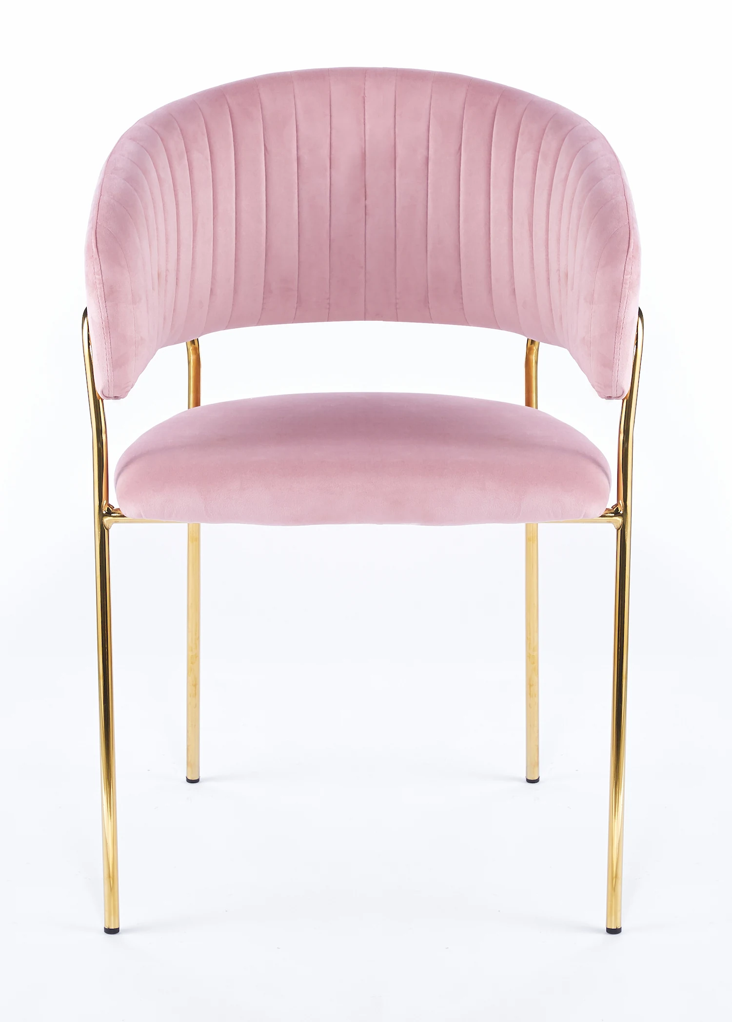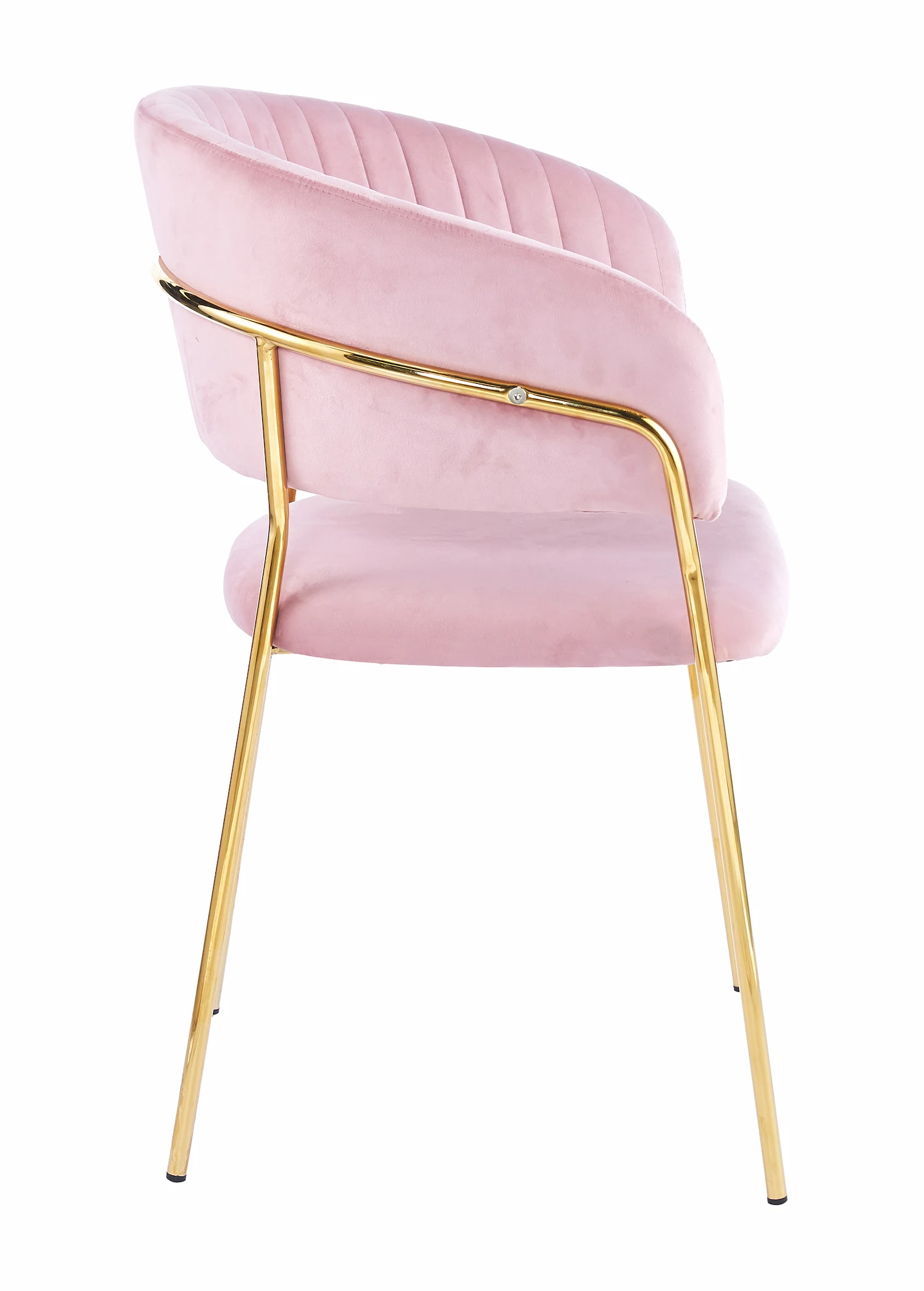 La silla de comedor Isa une diseño y resistencia para dar a tu negocio de hostelería ese plus de confort que los clientes valoran. Su tapizado aterciopelado y la solidez de sus patas de hierro doradas encajan a la perfección en bares, restaurantes, cafeterías u hoteles que buscan un aire moderno sin perder practicidad. El terciopelo acaricia, el hierro sostiene: juntos ofrecen un equilibrio perfecto. Isa no es solo mobiliario, es ese detalle que eleva la experiencia.